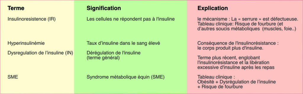 Relation La résistance à l’insuline est le mécanisme sous-jacent. Le terme générique « dysrégulation de l’insuline » englobe tous les troubles de la régulation de l’insuline. Le syndrome métabolique équin (SME) est le syndrome clinique où l’obésité, la dysrégulation de l’insuline et le risque de fourbure sont associés.